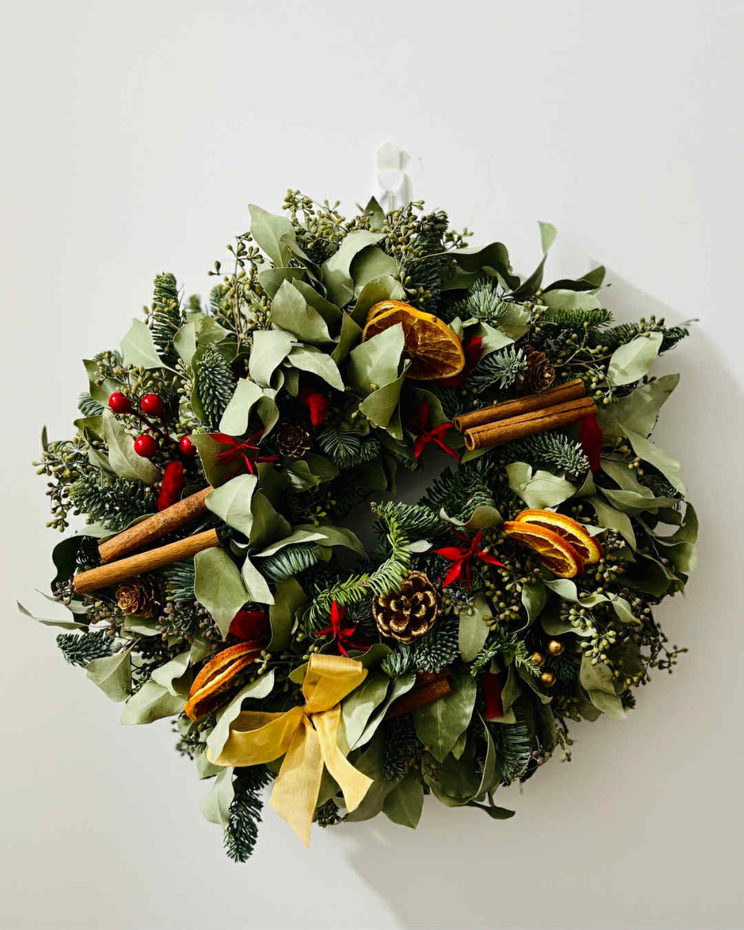 Durabilité exceptionnelle : Contrairement aux couronnes de Noël fraîches, cette création en fleurs et feuillages séchés se conserve d’une année sur l’autre, sans entretien particulier.