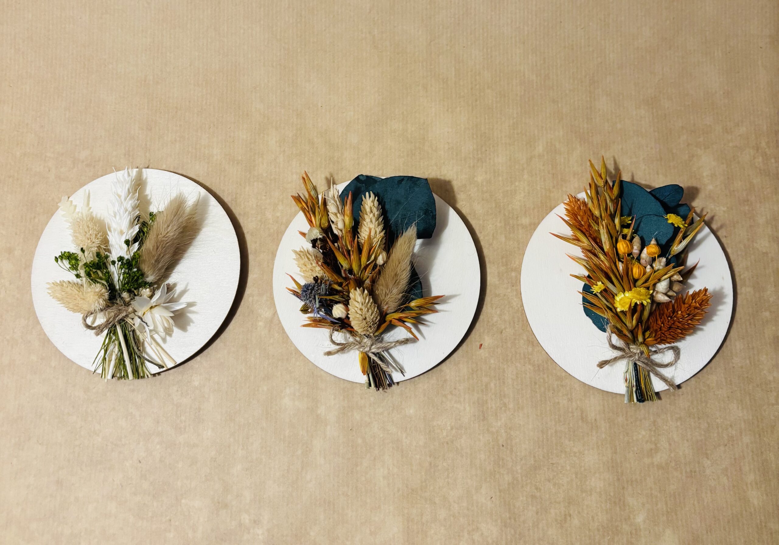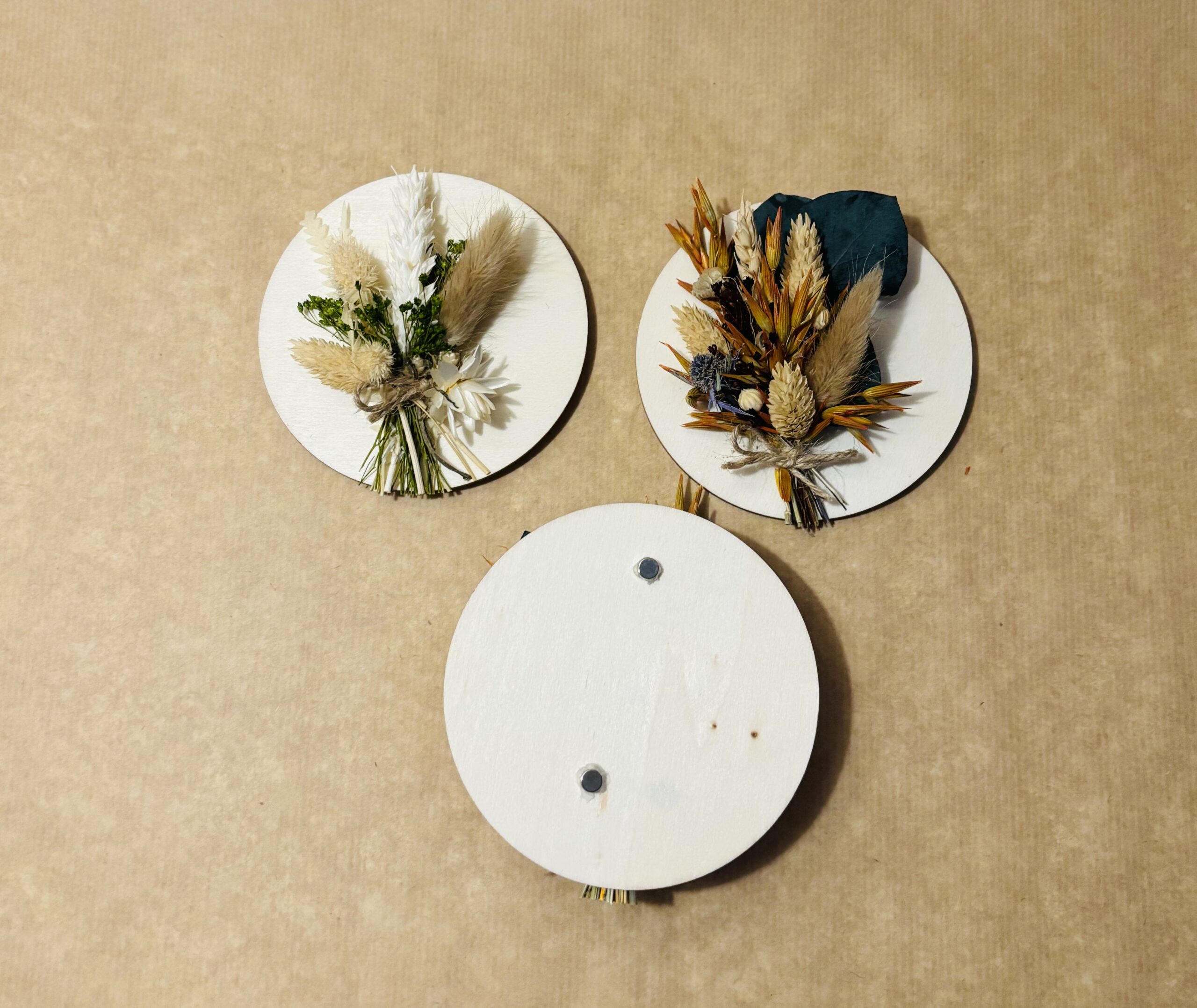 Chaque Magnéto’Fleur est une création originale, réalisée entièrement à la main. Un délicat bouquet de fleurs séchées et stabilisées est soigneusement assemblé, apportant une touche unique et personnalisée à chaque pièce. Que vous préfériez un style naturel ou plus élaboré, chaque Magnéto’Fleur est une œuvre d’art à part entière, témoignant de mon savoir-faire.
