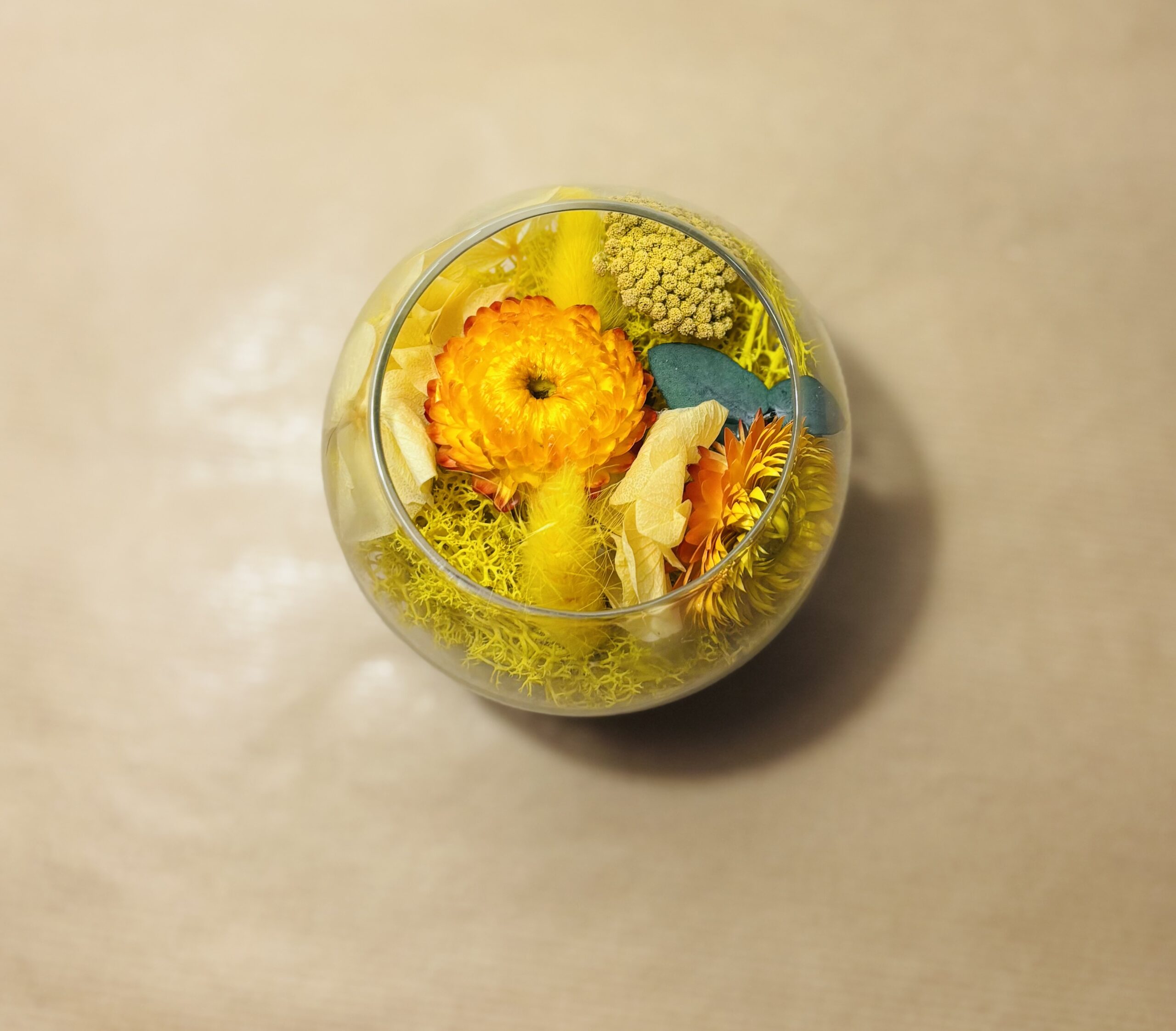 Chaque Mini-Jardin est une création originale, réalisée entièrement à la main. Son écrin de verre renferme un délicat bouquet de fleurs séchées et stabilisées, soigneusement assemblé. Chaque pièce est le fruit d’un travail passionné, apportant une touche unique et personnalisée. Chaque Mini-Jardin est une œuvre d’art à part entière, témoignant de mon savoir-faire