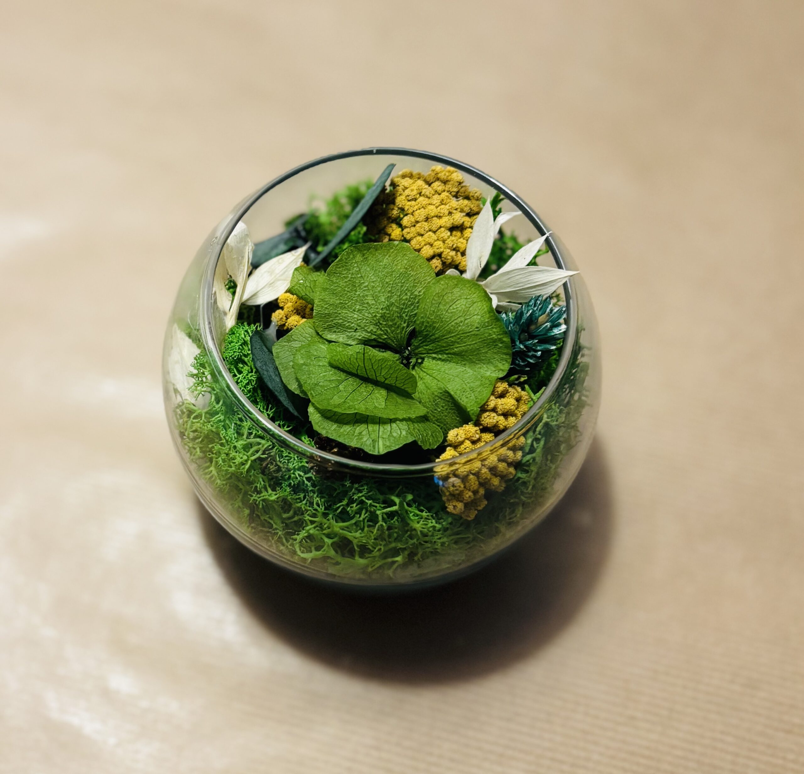 Chaque Mini-Jardin est une création originale, réalisée entièrement à la main. Son écrin de verre renferme un délicat bouquet de fleurs séchées et stabilisées, soigneusement assemblé. Chaque pièce est le fruit d’un travail passionné, apportant une touche unique et personnalisée. Chaque Mini-Jardin est une œuvre d’art à part entière, témoignant de mon savoir-faire